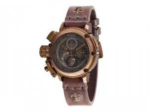 Diese Uhr ist komplett aus geschwärztem Kupfer gefertigt und bietet neben der Möglichkeit, bis in eine Tiefe von 100 Metern zu tauchen, viele Vorteile. Mit einem U-77 Vlajoux Top Look-Uhrwerk und einem automatischen 24-Stunden-Chronographen mit Tag- / Nachtanzeige könnte diese Uhr das Herzstück Ihrer Sammlung sein.